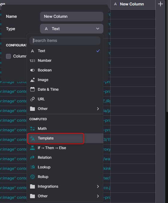 1. Glideのデータベースに『テンプレート』を挿入