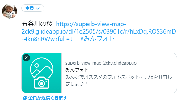 で、せっかく写真があるのだからツイートの中にその画像を埋め込みたいと思いました